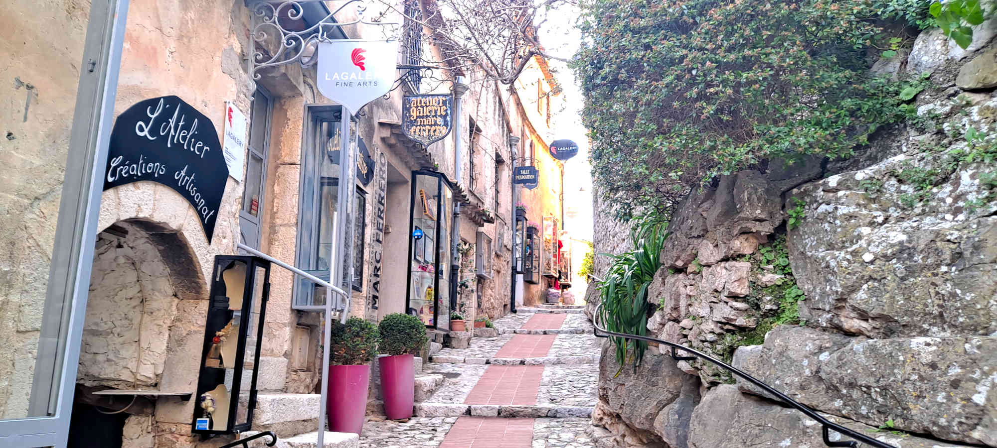 Ses ruelles étroites pavées, ses arcades et ses ateliers d’artisans offrent une atmosphère médiévale préservée. Èze est aussi lié à la parfumerie : Fragonard, Galimard et Molinard y perpétuent cette tradition.